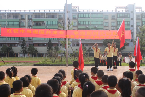 在充滿朝氣和活力的中國(guó)少年先鋒隊(duì)隊(duì)歌的歌聲中,儀式拉開了帷幕。首先是莊嚴(yán)而肅穆的升國(guó)旗儀式。接下里,學(xué)校領(lǐng)導(dǎo)翟軍校長(zhǎng)講話,他表達(dá)了對(duì)少先隊(duì)員們的殷切希望,鼓勵(lì)隊(duì)員們努力學(xué)習(xí)時(shí)刻做好準(zhǔn)備,爭(zhēng)做共產(chǎn)主義事業(yè)的接班人。大隊(duì)輔導(dǎo)員廖少紅老師帶領(lǐng)全體隊(duì)員學(xué)習(xí)了習(xí)總書記在會(huì)見中國(guó)少年先鋒隊(duì)第七次全國(guó)代表大會(huì)代表時(shí)的講話精神,使全體隊(duì)員充分認(rèn)識(shí)到了童年是人的一生中最寶貴的時(shí)期,在這個(gè)時(shí)期要注意樹立正確的人生目標(biāo),培養(yǎng)好思想、好品行、好習(xí)慣,做祖國(guó)的好兒童,做祖國(guó)的建設(shè)者。