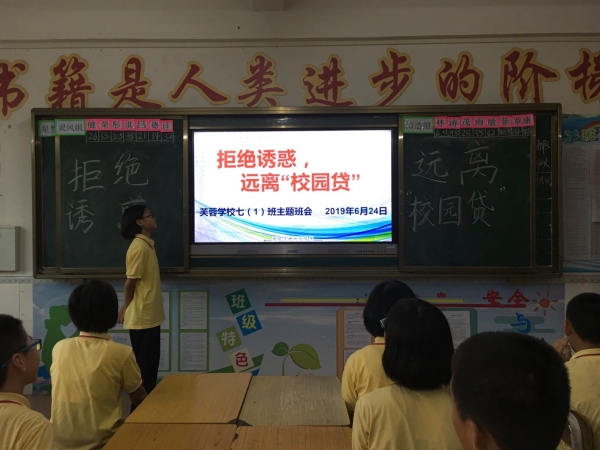 為了讓學(xué)生更加了解校園貸的危害,防止學(xué)生落入校園貸的陷阱,6月24日下午,芙蓉學(xué)校初中部開展了“拒絕誘惑,遠(yuǎn)離校園貸”主題班會活動,本次班活動以班級為單位開展。