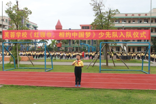 為深入學(xué)習(xí)宣傳貫徹黨的十九大精神,引領(lǐng)少先隊(duì)員踐行社會主義核心價(jià)值觀,增強(qiáng)少先隊(duì)員爭做新時(shí)代好隊(duì)員、成長為擔(dān)當(dāng)民族復(fù)興大任的時(shí)代新人的信心與決心,,5月30日,芙蓉學(xué)校舉行了以“紅領(lǐng)巾相約中國夢”為主題的新隊(duì)員入隊(duì)儀式。