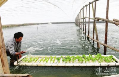 除了越冬賣魚之外,近段時(shí)間,李益民還研究起立體養(yǎng)殖,一棚多用,提高經(jīng)濟(jì)效益。記者留意到,魚塘一角,幾根塑料管道圍成矩形,水面上的漂浮盤中,種植著水培蔬菜。李益民介紹,這是利用魚塘中冬棚溫暖的氣溫,試種的水培蔬菜。一方面蔬菜能凈化魚塘水質(zhì),另一方面魚兒的排泄物,也能為蔬菜提供營養(yǎng)?!昂罄m(xù)我還準(zhǔn)備試種草莓,如果試種成功,將在魚塘中擴(kuò)大養(yǎng)殖規(guī)模?!崩钜婷裥χf。