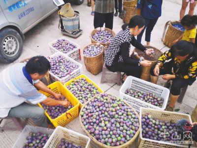 綏江縣南岸鎮(zhèn)李子收購點(diǎn),工人們?cè)诮o李子篩選和分類。