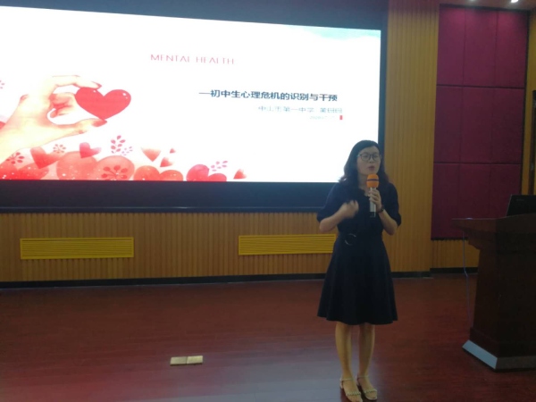 接著,黃老師圍繞“心理危機(jī)的識(shí)別和干預(yù)”、“常見心理問題的應(yīng)對(duì)”“教師自我調(diào)適”這三個(gè)方面與現(xiàn)場(chǎng)班主任進(jìn)行交流分享。黃老師首先分享自殺學(xué)生在各年級(jí)所占的比例,提出自殺危機(jī)一個(gè)都嫌多的觀點(diǎn),同時(shí)指出面對(duì)嚴(yán)重危機(jī),切忌想當(dāng)然,也“無需害怕”,危機(jī)亦為轉(zhuǎn)機(jī)!進(jìn)而和老師分享要關(guān)注心理高危學(xué)生的日常關(guān)注事例,遇到危機(jī)發(fā)生時(shí),要理解學(xué)生的感受,確保生命安全,聯(lián)系家長,啟動(dòng)學(xué)校應(yīng)急系統(tǒng),拖延到專業(yè)救援到來。黃老師提到,人人都可能面臨心理困擾,大部分的心理問題都是心理亞健康,現(xiàn)代社會(huì),越來越多的人借助心理咨詢完善提升自我,教師們要有維護(hù)自己心理健康的意識(shí),對(duì)自己負(fù)責(zé),先關(guān)愛自己、再去關(guān)愛學(xué)生、助學(xué)生健康發(fā)展。最后,與老師們共勉:做好學(xué)生的重要他人!