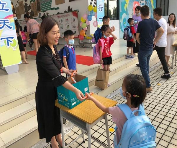29日上午8點,一年級新生、家長陸續(xù)來到鳳鳴小學(xué),值日教師為進(jìn)校的新生、家長測量體溫。學(xué)校劉松校長、莊惠茜副校長、劉苑主任等行政在大堂前歡迎一年級新生和家長,一年級的正副班主任在教室迎接孩子。8點半,一年級新生入學(xué)前培訓(xùn)正式開始。孩子們在老師的組織下熟悉了校園,學(xué)習(xí)了上課的常規(guī)要求,學(xué)習(xí)了如何有序排隊、文明入廁、做眼保健操等。到了中午,孩子們在老師的指引下學(xué)習(xí)了用餐禮儀。為保證學(xué)生作息規(guī)律,各班主任明確教室午睡習(xí)慣后安靜午休。