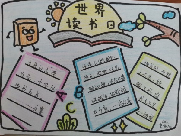 學(xué)校倡議:為師者必讀書;為人父母者需讀書;孩子們愛讀書。立身以立學(xué)為先,立學(xué)以讀書為本。作為引路人的教師,閱讀,必須先行!莎士比亞說過:“書籍是全世界的營養(yǎng)品,生活里沒有書籍,就好像沒有陽光;智慧里沒有書籍,就好像鳥兒沒有翅膀。”最幸?!闩阄易x書,讓讀書成為一種生活方式,世界讀書日是一個充滿儀式感的日子。春暖花開,正是讀書時。一段話,一個故事,觸動心扉,拉開了記憶的閘門……書籍是人類進步的階梯,愛讀書的好習(xí)慣,千金不換。孩子們讀書里的故事,邊讀邊想象,感知故事,品故事中的人生,繪出世間最美好的畫。開卷有益,多讀書,讀好書。疫情無情,讀書有味,同學(xué)們把自己讀到的好書精心制成手抄報。讀書不覺已春深,一寸光陰一寸金。抱著一本厚厚的書,透過薄薄的紙張,窺探一個個高尚的靈魂,一顆顆偉大的心,我們飛躍書山書海,品味書香。