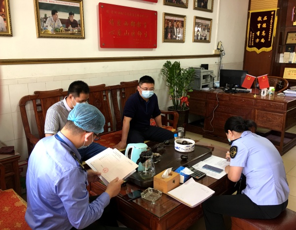 4月28日上午,東鳳鎮(zhèn)市場監(jiān)督管理局譚文平、韋穎欣兩位監(jiān)督員來到東海學(xué)校,對學(xué)校進行了監(jiān)督檢查,王強校長、后勤處朱鼎針主任、總務(wù)處林龍梅主任陪同檢查。