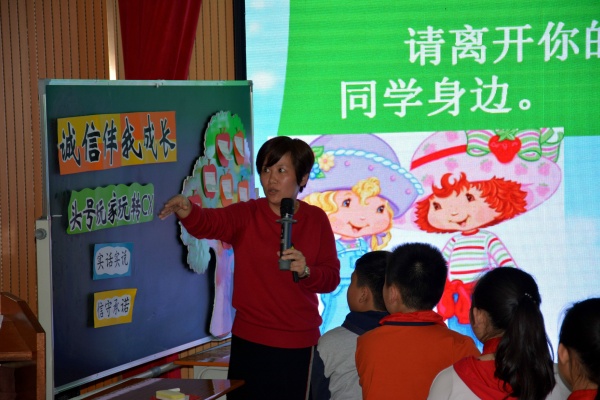 3月28日進(jìn)行的是小學(xué)高年組的比賽,主題為“誠信”。誠信是一個(gè)道德范疇,是公民的第二個(gè)“身份證”,是日常行為的誠實(shí)和正式交流的信用體現(xiàn)。面對生活中常見的誠信問題,參賽老師們從孩子身邊的事例講起,并請他們參與其中,孩子們積極參與,說出對誠信的理解。老師們加以分析與引導(dǎo),讓孩子們懂得什么是真正的誠信,教育他們做一個(gè)誠實(shí)守信的人。
