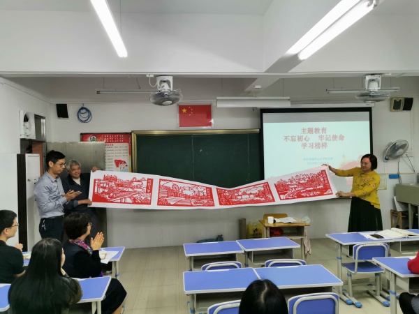 最后,善良用心的梁老師現(xiàn)場展示了記錄新時代偉大建設(shè)的作品,還分別給柏苑小學(xué)校方、全體黨員教師及教師們準(zhǔn)備了特別的剪紙禮物。這感人的一幕幕贏來了在場老師們的一次又一次的熱烈掌聲。梁老師用自己的行動和經(jīng)歷分享深深地感動和感染著在場的所有老師們,讓全體教師對梁老師產(chǎn)生無限的崇敬之情。