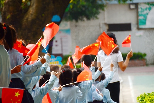 揮舞國旗,唱響校園