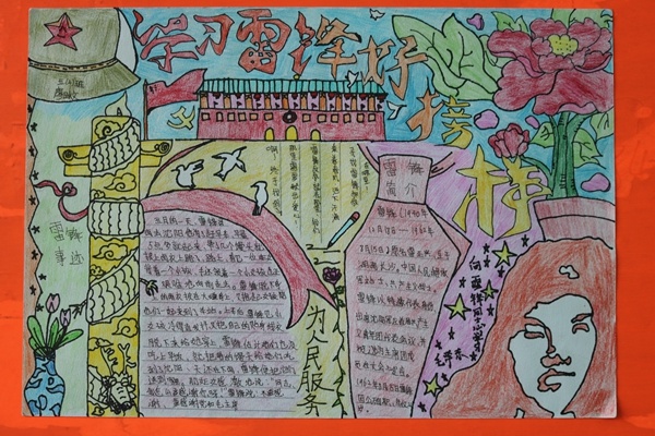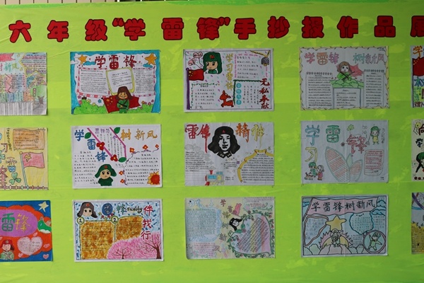 高年級組為大力宣傳雷鋒精神的時代意義和學(xué)雷鋒先進典型,組織學(xué)生用手抄報的形式,加深學(xué)生對雷鋒精神的認識和理解,促使學(xué)生自覺主動地在學(xué)習(xí)生活中時刻關(guān)注雷鋒精神,長期形成學(xué)雷鋒的氛圍。