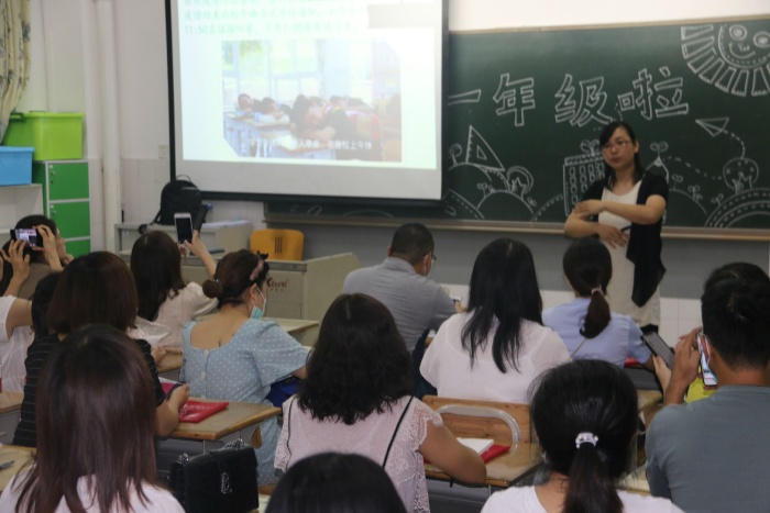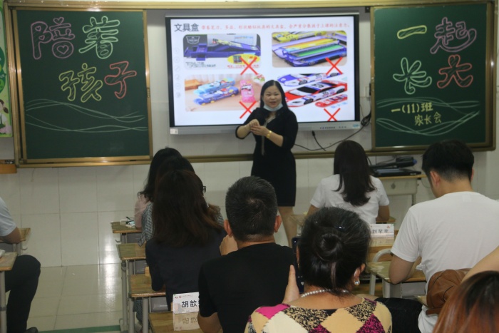 第二議程在課室開展。會(huì)前,一年級(jí)12位班主任準(zhǔn)備了詳實(shí)的課件,并對(duì)課室做了精心布置,黑板上或?qū)懼鴼g迎家長(zhǎng)的標(biāo)語,或畫著溫馨的圖畫,家長(zhǎng)們一走進(jìn)教室,就能感受到融洽、和諧的氛圍。會(huì)上,各班分別以“和孩子一起成長(zhǎng)”、“陪著孩子一起長(zhǎng)大”等為主題召開本學(xué)期首次家長(zhǎng)會(huì),向家長(zhǎng)強(qiáng)調(diào)了學(xué)校的日常管理要求和小學(xué)生需要遵守的行為習(xí)慣。