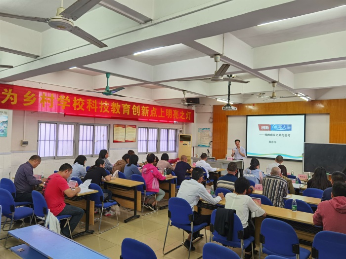 10月19日下午,廣東省知識(shí)產(chǎn)權(quán)研究會(huì)中小學(xué)教育專業(yè)委員會(huì)副主任、九江鎮(zhèn)中學(xué)榮譽(yù)校長(zhǎng)、正高級(jí)教師、特級(jí)教師、國(guó)家名師、國(guó)培專家劉志偉老師蒞臨阜沙鎮(zhèn)豐聯(lián)小學(xué),以“創(chuàng)新,點(diǎn)亮人生”專題為豐聯(lián)小學(xué)全體教師進(jìn)行了一場(chǎng)青少年科技創(chuàng)新教育的指導(dǎo)培訓(xùn)。