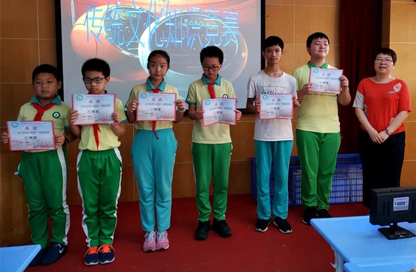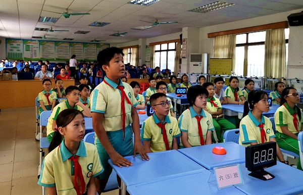 比賽現場,選手們腹有詩書,隨機應變,現場作答,比賽精彩紛呈,參賽同學認真作答?,F場緊張激烈的比賽結束后,評出團體一等獎兩個,分別為六(5)班和六(2)班;二等獎兩個,分別為六(4)班和六(3)班;三等獎兩個,分別為六(1)班和六(3)班。