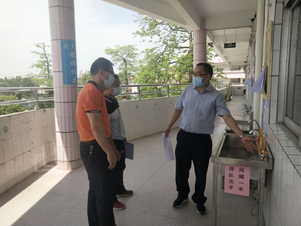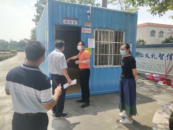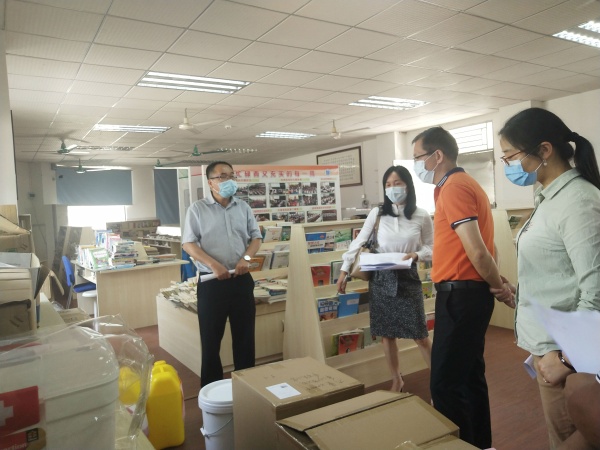 上午,由阜沙鎮(zhèn)教育事務(wù)指導中心主任徐瑞欣 、教研員吳雪儀等組成的防疫專班工作組首先進入學校會議室,按照《中山市中小學校幼兒園學生返校準備工作驗收表》,逐一查閱、核對了相關(guān)資料。緊接著,工作組對學校教室、圖書館、衛(wèi)生間、功能場室、隔離室等各場所的環(huán)境衛(wèi)生和防疫應(yīng)急相關(guān)設(shè)施進行核查,邊走邊看,邊聽取詹前秒校長匯報學校防控工作和學生返校準備情況。檢查過后,工作組成員將核查過程中發(fā)現(xiàn)的問題及時向?qū)W校行政進行了反饋和匯總。