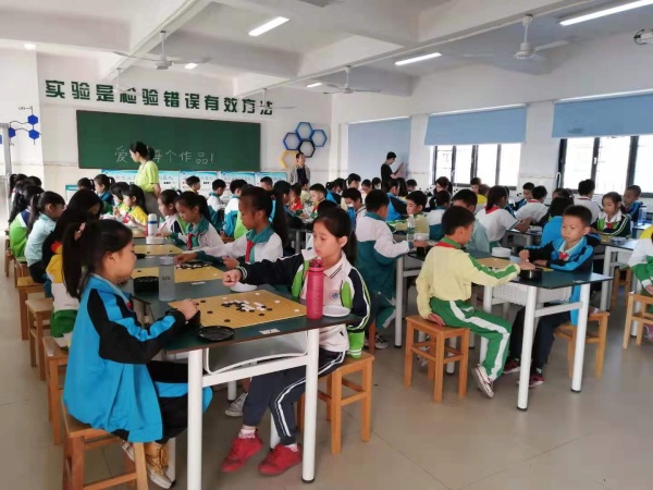 圍棋,是一種策略型兩人棋類(lèi)游戲,中國(guó)古時(shí)稱(chēng)“弈”,屬琴棋書(shū)畫(huà)四藝之一。圍棋起源于中國(guó),蘊(yùn)含著中華文化的豐富內(nèi)涵,它是中國(guó)文化與文明的體現(xiàn)。圍棋使用方形格狀棋盤(pán)及黑白二色圓形棋子進(jìn)行對(duì)弈,棋子走在交叉點(diǎn)上,雙方交替行棋,落子后不能移動(dòng),以圍地多者為勝。阜沙鎮(zhèn)豐聯(lián)小學(xué)一直致力于圍棋教學(xué)及訓(xùn)練的開(kāi)展,既傳承了中華傳統(tǒng)文化,又鍛煉了豐聯(lián)學(xué)子們的智力和品格。在比賽現(xiàn)場(chǎng),豐聯(lián)小學(xué)代表隊(duì)的各個(gè)小棋手或眉頭緊皺,或嘴角上揚(yáng),或落子如飛,真是“楚河漢界斗智勇,黑棋白子賽學(xué)問(wèn)”!