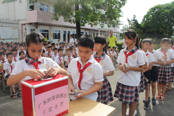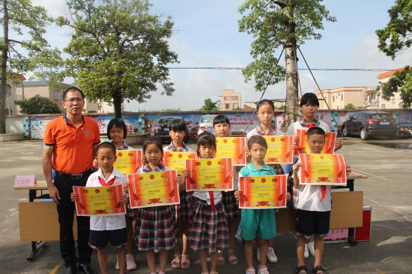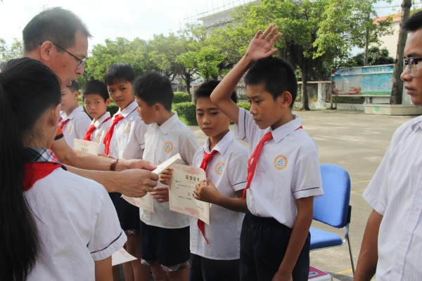 接下來,讓學(xué)生們緊張又興奮的頒獎環(huán)節(jié)到了。學(xué)校行政分別為在德、智、體、美、勞各方面有優(yōu)異成績,在學(xué)習(xí)、紀(jì)律、文明禮儀等方面都表現(xiàn)突出的先進學(xué)生進行頒獎。鄧留兵同學(xué)獲中山市優(yōu)秀少先隊員稱號;學(xué)校足球隊在阜沙鎮(zhèn)2019年足球聯(lián)賽中獲小學(xué)組亞軍;楊浩等12名學(xué)生獲得三好學(xué)生;李妍琪等12名學(xué)生獲得優(yōu)秀班干部......校園里不時響起陣陣熱烈的掌聲,為這些努力進取的同學(xué)們送上肯定和贊揚。在頒獎結(jié)束后,學(xué)校還在本次散學(xué)禮上進行了響應(yīng)“決戰(zhàn)脫貧攻堅,助力鄉(xiāng)村振興”的廣東扶貧濟困日捐款儀式。師生們紛紛進行捐款,傳遞愛心,營造希望。