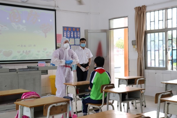 校園安全無小事,在新型冠狀病毒流行的今天,為了進(jìn)一步保障校園師生生命安全和身體健康,5月9日下午,阜沙鎮(zhèn)羅松小學(xué)舉行了校園新冠肺炎疫情防控應(yīng)急演練,全體教職員工、行政參加了演練。演練中,阜沙鎮(zhèn)黨委副書記孫海卿、文教衛(wèi)計(jì)局局長黃桂生、社區(qū)衛(wèi)生服務(wù)中心主任黃極信、教育事務(wù)指導(dǎo)中心主任徐瑞欽出席,并全程觀摩了演練。