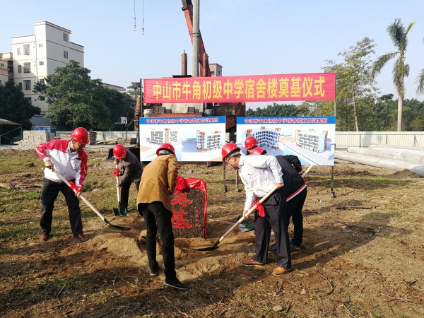12月20日,中山市牛角初級中學(xué)舉行了新宿舍樓的奠基儀式,阜沙鎮(zhèn)的各級領(lǐng)導(dǎo)和學(xué)校老師們參與了本次活動。