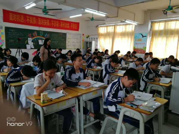2018年12月5日,阜沙鎮(zhèn)牛角中學(xué)全體英語教師齊聚初三(3),觀摩隱性閱讀課題的研討課。授課者為阜沙鎮(zhèn)骨干教師盧桂娟。授課內(nèi)容為新目標(biāo)九年級Unit 9 I like music that I can dance to Section A 3a-3c。