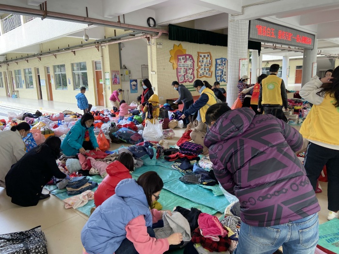 活動(dòng)前,到港口鎮(zhèn)中心小學(xué)跟崗學(xué)習(xí)的白玉縣二完小的副校長(zhǎng)四郎多吉在三年級(jí)學(xué)生會(huì)議上向中心小學(xué)的孩子們介紹白玉縣二完小孩子們的學(xué)習(xí)和生活。孩子們被白玉二完小小伙伴們艱苦的生活,渴望知識(shí)的態(tài)度,特別是在嚴(yán)寒中堅(jiān)持刻苦學(xué)習(xí)的精神所打動(dòng)。隨后三年級(jí)家委在各班發(fā)起一場(chǎng)捐衣活動(dòng)。倡議發(fā)出后,校園里掀起了一股愛(ài)心捐衣的熱潮。孩子們?cè)诟改傅膸椭聦㈤e置的毛衣、羽絨服、圍巾、文具用品等分類打包整理,并給遠(yuǎn)方的朋友寫上愛(ài)心祝福。