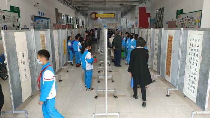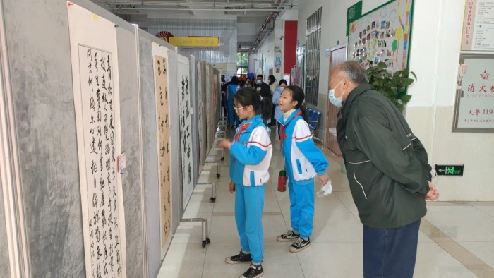 隨后,領(lǐng)導(dǎo)嘉賓們、師生代表、家長(zhǎng)代表共同參觀了師生的書畫作品。本次展覽主要展出了約60件師生作品以及友好人士書法作品。這些作品內(nèi)容豐富,精彩紛呈,行楷篆隸,字體各異。有些學(xué)生作品看似簡(jiǎn)單,略顯稚嫩,但都凝聚著老師和學(xué)生的智慧和心血,抒發(fā)著對(duì)中華傳統(tǒng)文化的無限熱愛,感懷著書畫藝術(shù)的獨(dú)特魅力。
