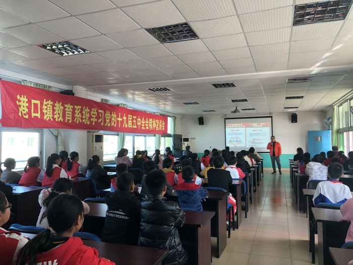 為深入貫徹黨的十九屆五中全會精神,聚焦培養(yǎng)擔(dān)當(dāng)民族復(fù)興大任和時代新人。2020年12月31日下午,港口鎮(zhèn)中南小學(xué)舉行了十九屆五中全會宣講會,主講人為市宣講員、大南中學(xué)德育副主任周智勇。港口鎮(zhèn)黨委委員、港口鎮(zhèn)教育黨委書記羅希京、港口鎮(zhèn)教育黨委副書記、港口鎮(zhèn)教育和體育事務(wù)指導(dǎo)中心主任劉憲軍、港口鎮(zhèn)教育黨委委員、港口鎮(zhèn)教育和體育事務(wù)指導(dǎo)中心副主任張育文、港口鎮(zhèn)中南小學(xué)校長黃權(quán)炎、中南小學(xué)教師代表和六年級學(xué)生參加了此次宣講會。