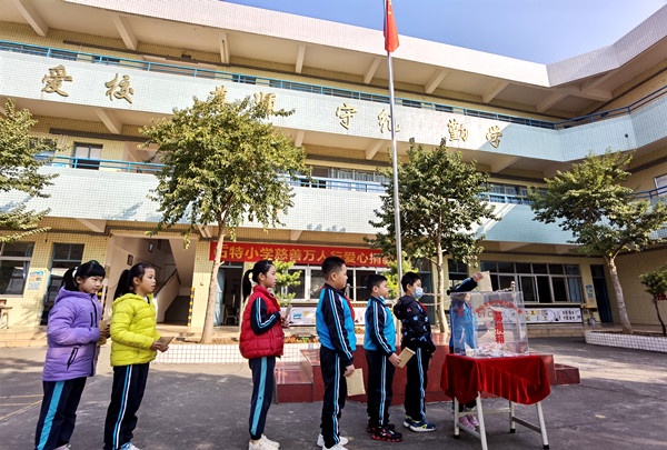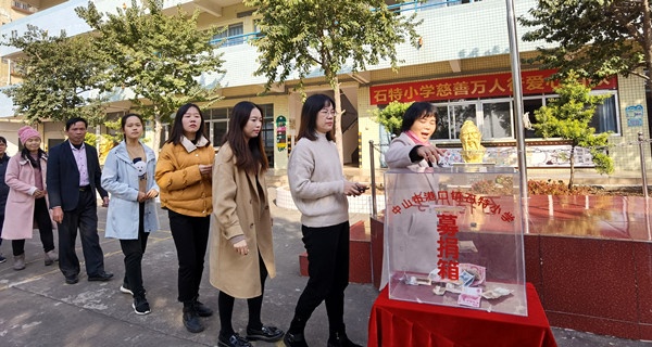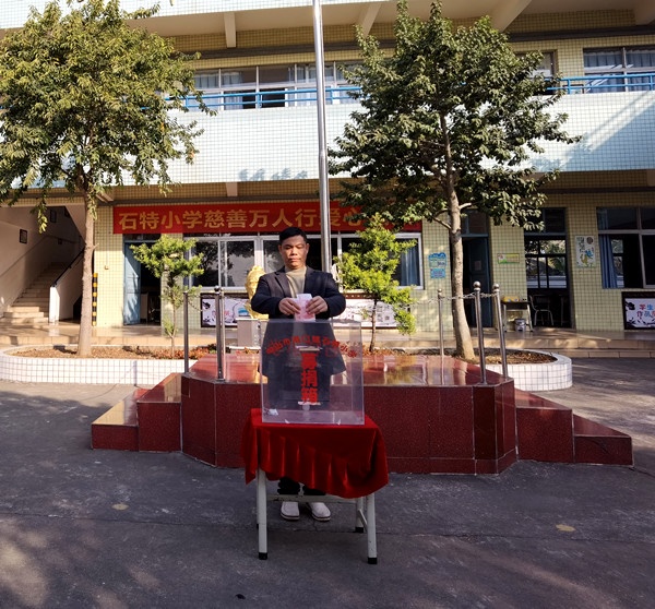 在歌曲《愛的奉獻(xiàn)》的旋律中,“慈善萬人行”捐款活動開始了?;顒又?,全體師生踴躍參與,用他們的實際行動傳承了中華民族樂善好施的傳統(tǒng)美德,弘揚(yáng)了無私奉獻(xiàn)的博愛精神。首先,由梁容根校長帶領(lǐng)著老師們來到捐款箱前把善款投入箱中,獻(xiàn)出自己的一份愛心。隨后各班代表輪流排隊到捐款信箱依次進(jìn)行捐款,小小捐款箱,滿載著石特小學(xué)全體師生的愛。即使冬日里寒風(fēng)陣陣,也因這一個個善舉而溫暖人心。