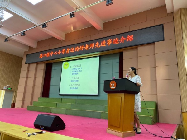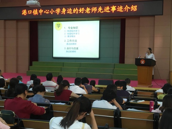 金秋時(shí)節(jié),瓜果飄香,在這春華秋實(shí)、滿載喜悅的時(shí)節(jié)里,為了更好地促進(jìn)師德建設(shè),9月23日,港口鎮(zhèn)中心小學(xué)全體教師齊聚學(xué)校大禮堂,拉開(kāi)了師德師風(fēng)建設(shè)活動(dòng)的序幕。此次活動(dòng)主要由兩部分組成:教學(xué)處黃美玲主任作為先進(jìn)教師代表進(jìn)行了發(fā)言,先進(jìn)新教師代表王歡歡老師分享了學(xué)校通訊工作經(jīng)驗(yàn)。