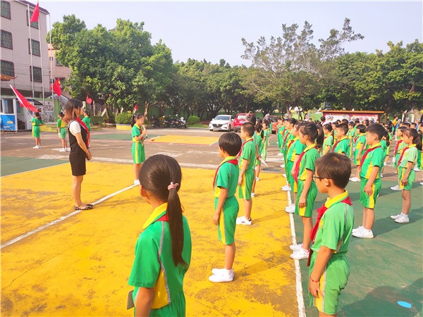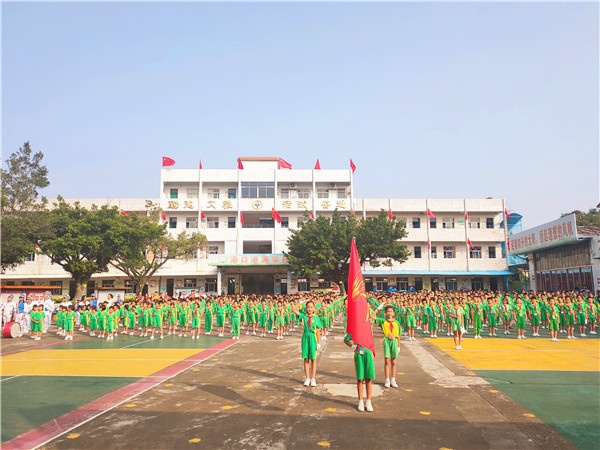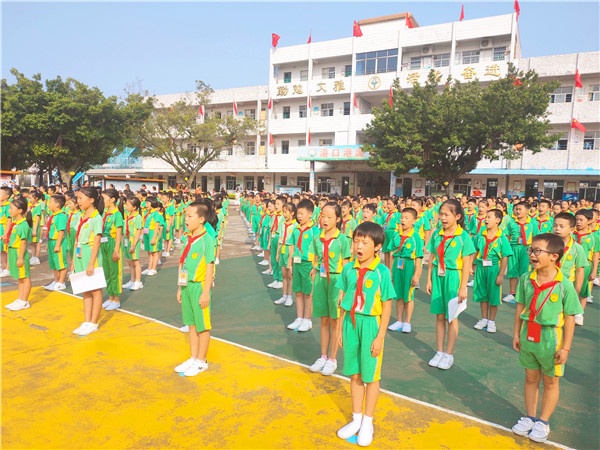 早上8點(diǎn),全體師生佩戴紅領(lǐng)巾,著裝整齊,列隊(duì)操場(chǎng)。隨后國(guó)歌音樂(lè)響起,全場(chǎng)肅立,港口港源學(xué)校慶祝少先隊(duì)成立70周年主題隊(duì)日活動(dòng)正式拉開(kāi)帷幕。升旗儀式后,大隊(duì)輔導(dǎo)員鐘鳳怡老師以《紅領(lǐng)巾心向黨,爭(zhēng)做新時(shí)代好隊(duì)員》為主題在國(guó)旗下講話(huà),號(hào)召少先隊(duì)員們要熱愛(ài)祖國(guó),熱愛(ài)人民,從小立志做個(gè)有用之才,長(zhǎng)大后要投身到祖國(guó)需要的地方,去建設(shè)我們的國(guó)家,去回饋我們的社會(huì)。