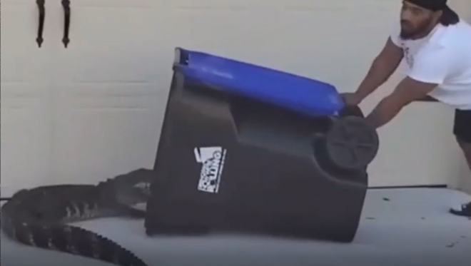 26歲的佛羅里達州男子尤金·博澤最近在美國上了熱搜,起因是他在家外面的空地發(fā)現(xiàn)了一條鱷魚,他小心翼翼地放平垃圾箱,一步步推向鱷魚,最后把鱷魚鏟進了垃圾箱里,蓋上蓋子,成功捕獲鱷魚。