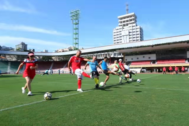 跑步活動結(jié)束后,廣東省教育廳工會、廣州美術(shù)學(xué)院工會、廣東援疆工作隊、駐粵部隊共4支足球隊開展了軍地足球交流活動,共有近百名足球愛好者參加了交流,一起健康運(yùn)動為祖國慶生。