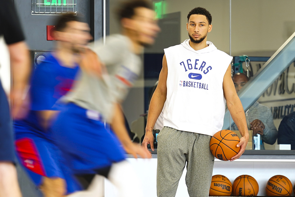 西蒙斯參與了訓(xùn)練,卻表現(xiàn)得像個過客。(人民視覺)