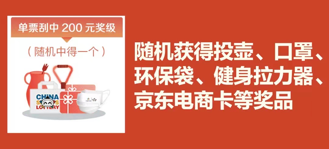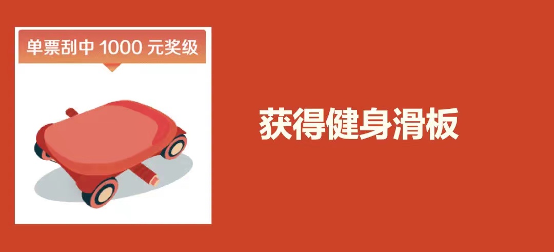 活動期間,凡是購買“寅虎”、“錦虎賀歲”、“2022”、“虎虎生威”4款即開票中任意1款,單票刮中1000元獎級,在完成獎金兌付后,通過“中國體育彩票”APP或微信小程序,掃描保安區(qū)二維碼登錄活動頁面,即可獲得健身滑板。單票刮中200元獎級,在完成獎金兌付后,通過“中國體育彩票”APP或微信小程序,掃描保安區(qū)二維碼登錄活動頁面,即可隨機領(lǐng)取投壺、口罩、環(huán)保袋、健身拉力器、電商卡等獎品,獎品數(shù)量有限,領(lǐng)完即止。