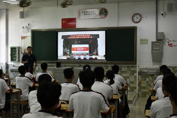2021年9月10日,中山市火炬科學(xué)技術(shù)學(xué)校2021-2022學(xué)年度第一學(xué)期開學(xué)典禮暨開學(xué)第一課在南朗校區(qū)紫荊堂舉行,全校師生通過教室多媒體直播系統(tǒng)進(jìn)行收看。中山市火炬科學(xué)技術(shù)學(xué)校校長程少輝,中山市反詐騙中心翠亨新區(qū)分中心劉逸澤警官,南朗街道南苑派出所駐校民警鐘潤祥警官,以及南朗街道綜治辦、禁毒辦的工作人員等參加了本次活動,活動儀式由學(xué)校德育處副主任袁建主持。