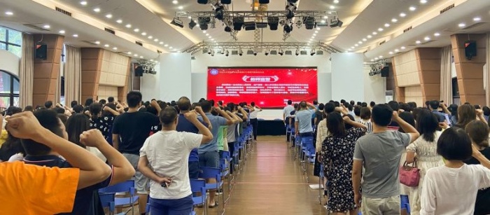 “不忘立德樹人初心,牢記為黨育人、為國育才使命,做到有理想信念、有道德情操、有扎實學(xué)識、有仁愛之心”。全體教職工高高舉起右拳,在馮子川的領(lǐng)誓下,莊嚴(yán)宣誓:“我志愿做一名光榮的人民教師,深入學(xué)習(xí)領(lǐng)會習(xí)近平新時代中國特色社會主義思想,忠誠黨的教育事業(yè),貫徹黨的教育方針……”一句句鏗鏘有力的誓詞,一聲聲篤信堅定的話語表達(dá)了教職工們以磐石初心堅定育新人的決心和信心,以昂揚奮進(jìn)的姿態(tài)做新時代的好老師。