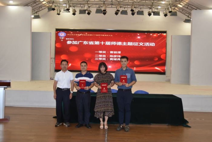 9月10日,中山市沙溪理工學(xué)校全體教職工歡聚一堂,在學(xué)校綜藝廳共同慶祝第37個教師節(jié)暨表彰大會。會上,學(xué)校黨總支書記、校長馮子川帶領(lǐng)全體教師學(xué)習(xí)領(lǐng)會《習(xí)近平給全國高校黃大年式教師團(tuán)隊代表的回信》《中山市教育和體育局致全市教師的一封信——老師,您辛苦了》等文件精神,表彰優(yōu)秀教師,并帶領(lǐng)全體教師宣誓。大會由學(xué)校副校長盧永輝主持。