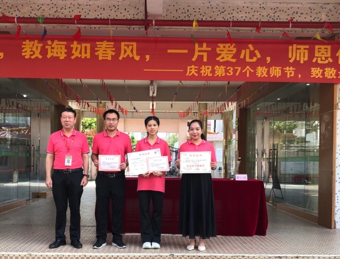 大會(huì)第二項(xiàng),政教處陳七靈副主任宣讀了表彰的中山市優(yōu)秀教師及中山市優(yōu)秀少先隊(duì)輔導(dǎo)員,劉品江校長(zhǎng)與何元柱副校長(zhǎng)為他們頒發(fā)了榮譽(yù)證書。