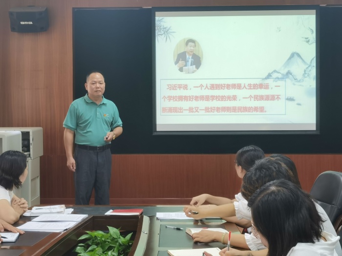 隨后,鄭少君給全體教師詳細(xì)解讀了《中山市師德師風(fēng)建設(shè)三年行動(dòng)計(jì)劃》和《廣東省中小學(xué)有償補(bǔ)課和教師違規(guī)收禮受禮品禮金問(wèn)題專(zhuān)項(xiàng)整治實(shí)施方案》等政策。與此同時(shí),大家集中學(xué)習(xí)了《 中山市中小學(xué)(幼兒園)教師職業(yè)行為負(fù)面清單(試行)》以及《新時(shí)代中小學(xué)教師職業(yè)行為十項(xiàng)準(zhǔn)則》等文件精神。他指出希望全體教師在思想上高度重視,在行動(dòng)上保持一致,認(rèn)真參與此項(xiàng)活動(dòng),嚴(yán)明有關(guān)紀(jì)律,踐行師德規(guī)范!