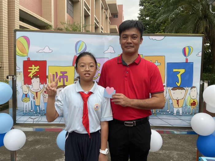為了迎接一年一度的教師節(jié),旗北小學(xué)全體行政和體藝科組提前精心策劃,給旗北小學(xué)全體教師送上最真摯的祝福。上午7時30分,教學(xué)樓樓梯鋪上了鮮艷的紅地毯,裝點上節(jié)日的氣球,學(xué)生站在地毯兩側(cè),靜候旗北小學(xué)教師的到來。當各位教師走上紅毯時,兩旁學(xué)生一齊對老師說:“老師,您辛苦了,節(jié)日快樂!”隨后,學(xué)生向老師送出親手寫的賀卡并和老師合影留念,讓全體教師感受到了節(jié)日的驚喜。