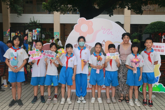 純真燦爛的笑容綻放在師生的臉上,若有若無的“花香”縈繞在青翠的樹旁。全校學(xué)生精心制作教師節(jié)手工花,繪畫的、彩紙的、輕黏土的......每一朵花都寄寓著美好的愿望,每一朵花都散發(fā)著動(dòng)人的韻味,每一朵花都讓教師們陶醉感動(dòng),甜在心頭。