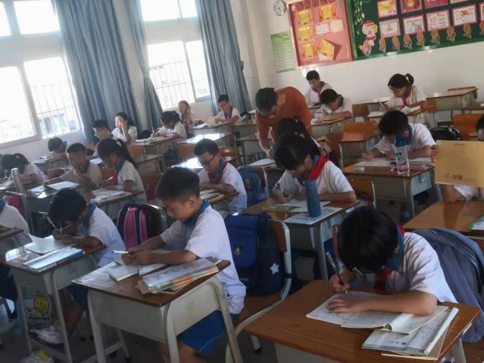 下午4點(diǎn)半,下課鈴聲敲響,校園里依然熱鬧歡躍,沒(méi)有參加課后服務(wù)的同學(xué)們收拾好書(shū)包,有序離開(kāi)校園。參加課后服務(wù)的同學(xué)們?cè)诟黜?xiàng)目負(fù)責(zé)老師的帶領(lǐng)下到達(dá)指定的場(chǎng)地進(jìn)行學(xué)習(xí)或運(yùn)動(dòng)……在各班課室,同學(xué)們?cè)谡J(rèn)真地完成作業(yè),老師們及時(shí)地進(jìn)行輔導(dǎo);在籃球場(chǎng),同學(xué)們拍動(dòng)籃球,揮灑著汗水;在計(jì)算機(jī)教室,學(xué)生們?cè)诶蠋煹闹笇?dǎo)下,認(rèn)真練習(xí)著;在美術(shù)社團(tuán),孩子們拿著筆在畫(huà)紙上盡情作畫(huà)……學(xué)校本著“多元、適應(yīng)、綜合、選擇”的原則,讓學(xué)生根據(jù)興趣愛(ài)好自主選擇,使學(xué)生興趣愛(ài)好在課后服務(wù)中得到充分“滋養(yǎng)”。