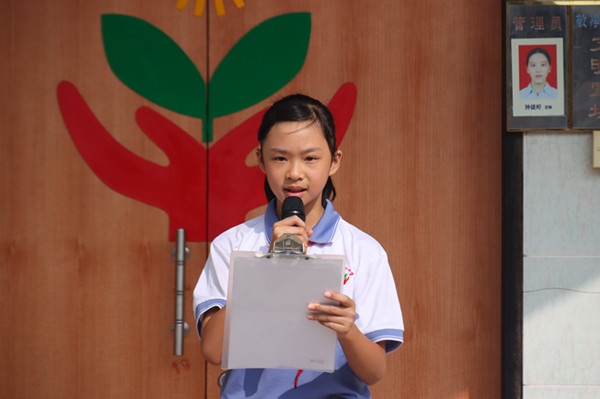 9月10日大課間,五3班的林倩婷同學(xué)代表全體同學(xué)向全校老師獻(xiàn)詞。她將無私奉獻(xiàn)的老師比作人梯、園丁、春蠶和蠟燭,言語中流露著對老師的感恩之情。她滿懷深情的話語,飽含激情的言辭感染了在場的每一位師生。