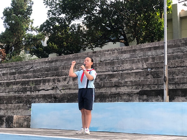 緊接著,同學(xué)們集中在國旗下,簡單而隆重的升旗儀式后,五(1)中隊熊一妍隊員作為大隊代表發(fā)表了國旗下講話。她與同學(xué)們重溫了九一八歷史事件,希望同學(xué)們勿忘國恥,從歷史中汲取教訓(xùn),努力學(xué)習(xí),長大后建設(shè)祖國。接著,大隊輔導(dǎo)員伍煜獻(xiàn)老師進(jìn)行了活動總結(jié),表揚(yáng)了同學(xué)們的整體表現(xiàn),強(qiáng)調(diào)了要在保證安全的前提下,進(jìn)一步提高安全逃生的速度。