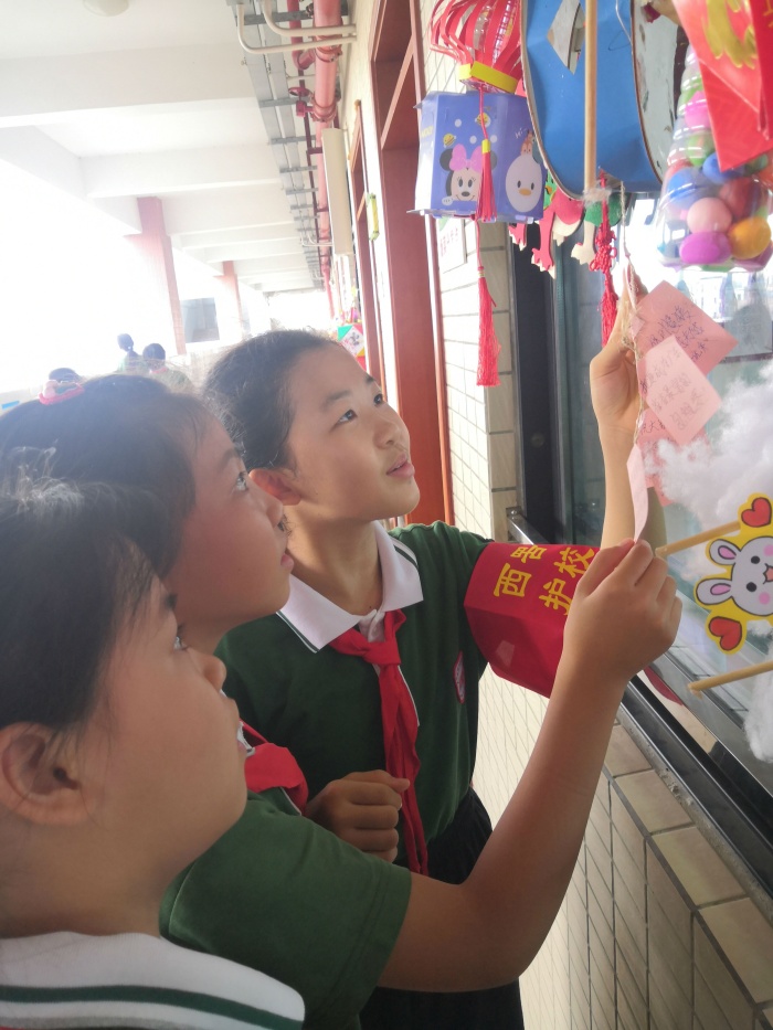 一大早,學(xué)生們滿心歡喜提著自己的燈籠進(jìn)校園,臉上掛著激動(dòng)雀躍的笑容。首先各班班主任開展了以“我們的節(jié)日——中秋佳節(jié)”為主題的班會(huì)課。課上,老師既通過(guò)精心的課件、生動(dòng)的視頻、有趣的故事,引領(lǐng)學(xué)生了解中秋有關(guān)的故事和習(xí)俗,感受傳統(tǒng)文化的魅力,也讓學(xué)生交流分享親子制作燈籠的創(chuàng)意與感受。倡導(dǎo)學(xué)生學(xué)習(xí)變廢為寶、學(xué)科融合、親子合作等優(yōu)良品質(zhì)。隨后師生一起興奮地提著燈籠拍照、布展。高高掛起的五彩燈籠裝飾了教室的走廊,成為一道靚麗的風(fēng)景線,引來(lái)了師生駐足觀賞,品鑒自己最喜歡的作品,并根據(jù)創(chuàng)意、色彩、構(gòu)造為最佳設(shè)計(jì)的作品投下神圣的一票。