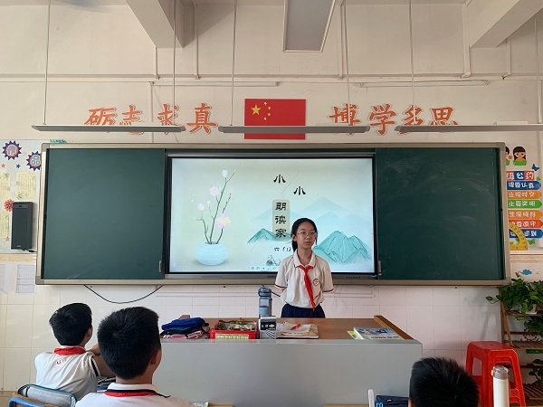 在此期間,學(xué)校抓住各種機(jī)會(huì)向全校師生宣傳推普周,推廣普通話。9月13日星期一升旗儀式上,語(yǔ)文科組長(zhǎng)曹發(fā)月老師代表進(jìn)行了“讓我們一起講普通話”的國(guó)旗下講話。他從五個(gè)方面向大家提出倡議,倡導(dǎo)輔導(dǎo)員老師和隊(duì)員們積極地行動(dòng)起來(lái),從自己做起,人人爭(zhēng)做推廣普通話和使用規(guī)范字的模范,在校園中營(yíng)造良好的語(yǔ)言文化氛圍,弘揚(yáng)民族文化,樹(shù)立民族精神,為構(gòu)建書香校園而努力。