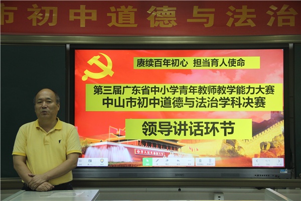 為推動(dòng)初中道德與法治課程教學(xué)改革,進(jìn)一步提高道德與法治教師業(yè)務(wù)水平,加強(qiáng)思政課教師隊(duì)伍建設(shè),第三屆廣東省中小學(xué)青年教師教學(xué)能力大賽中山市初中道德與法治學(xué)科決賽于2021年9月16日—17日在溪角中學(xué)如期舉行。中山市教育教學(xué)研究室何晉中主任、中山市教體局秘書科譚燕燕科長、中山市教育教學(xué)研究室夏建軍老師、沙溪鎮(zhèn)教體文旅局局長貝鵬程、沙溪鎮(zhèn)教育和體育事務(wù)中心寧云志主任蒞臨現(xiàn)場。