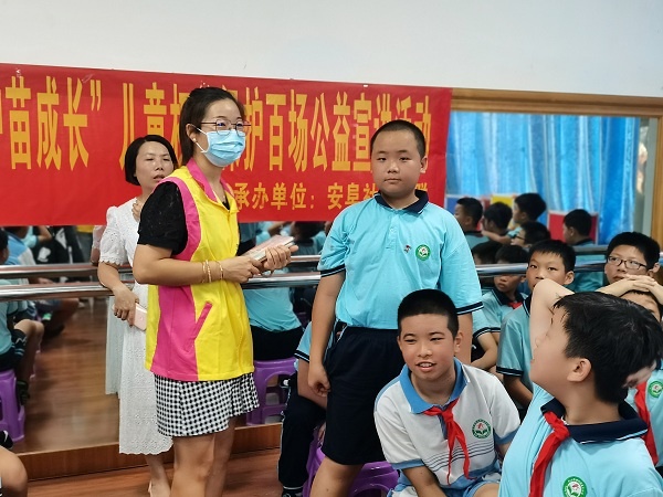 為貫徹落實(shí)“關(guān)愛(ài)女童 護(hù)苗成長(zhǎng)”保護(hù)女童人身權(quán)益三年行動(dòng),落實(shí)2021年中山市民生實(shí)事“童心同行 護(hù)苗成長(zhǎng)”兒童權(quán)益保護(hù)項(xiàng)目,維護(hù)婦女兒童合法權(quán)益,加強(qiáng)兒童人身安全宣傳教育,9月15日中山市婦聯(lián)聯(lián)合坦洲鎮(zhèn)安阜社區(qū)在安阜小學(xué)開(kāi)展“童心同行 護(hù)苗成長(zhǎng)”兒童權(quán)益保護(hù)百場(chǎng)公益宣講活動(dòng)。來(lái)自廣東孚律師事務(wù)所的肖靜律師給同學(xué)們帶來(lái)了題為“關(guān)愛(ài)孩子 護(hù)苗助長(zhǎng)”的精彩法律講座。