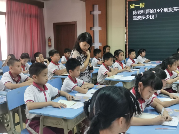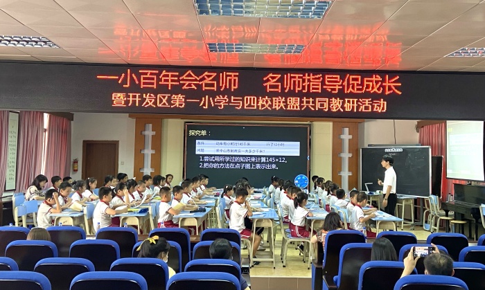 承擔此次活動的授課教師和學生是來自開發(fā)區(qū)第一小學陳開明老師和四年級5班的學生。陳老師在備課組成員的幫助下不斷調(diào)整教學方法,在前期多次試教中完善課堂細節(jié),精準把握課堂預設與教學效果。讓人眼前一亮的是,在此次展示的四年級上冊《三位數(shù)乘兩位數(shù)》課堂中,陳老師把數(shù)形結(jié)合、算式和豎式相結(jié)合,引導學生不僅要知道“怎么算”,還要明白“為什么這樣算”,突破常規(guī)算理;新穎的教學策略,既培養(yǎng)學生思考的學習習慣,更突出了學本教學的理念,同時能有效運用舊知遷移完成新知學習,達到了很好的教學效果。給在座的老師們呈現(xiàn)了一場知識的盛宴,帶來了很多啟發(fā)和思考。