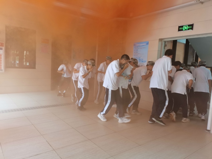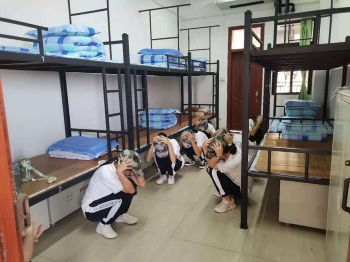 下午,宿舍地震疏散逃生演練正式開始。只聽模擬地震發(fā)生的信號——三聲短哨聲傳來,宿舍里的同學(xué)們行動迅速,立即就近躲避,用手保護(hù)著自己的頭部和頸部,背靠柜子、床架或墻角。接著,一聲長哨信號傳來,學(xué)生陸續(xù)開始疏散。各班班主任在指定位置、在恰當(dāng)時機(jī)燃放早已準(zhǔn)備好的無毒煙霧彈,為地震演習(xí)營造了更逼真的效果。守在樓梯口的老師們一邊維持秩序,一邊提醒同學(xué)們做好抱頭、彎腰、捂鼻等必要動作。同學(xué)們疏散到廣場后,各班班主任快速清點本班人數(shù)并及時報告。在整個疏散過程中,師生配合默契,組織有條不紊,人人各盡其責(zé)。