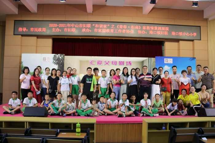 為更好地推進家庭教育工作,引領(lǐng)廣大家庭“注重家庭、注重家教、注重家風(fēng)”,促進家庭和睦、親子和諧,營造有利于兒童健康成長的家庭和社會環(huán)境,9月27日晚,由中山市民政局指導(dǎo),中山市婦女聯(lián)合會主辦,中山市家庭教育工作者協(xié)會承辦,港口鎮(zhèn)婦聯(lián)、港口鎮(zhèn)中心小學(xué)協(xié)辦的2021年中山市“和諧家”之《青春·拒毒》家教情景劇正在港口鎮(zhèn)中心小學(xué)大禮堂精彩上演。港口鎮(zhèn)婦聯(lián)陳麗華主席、港口鎮(zhèn)中心小學(xué)李小健校長、梁文玲副校長、丘茶芬副校長、六年級全體班主任和200多名好學(xué)親子一起觀看了本場演出。