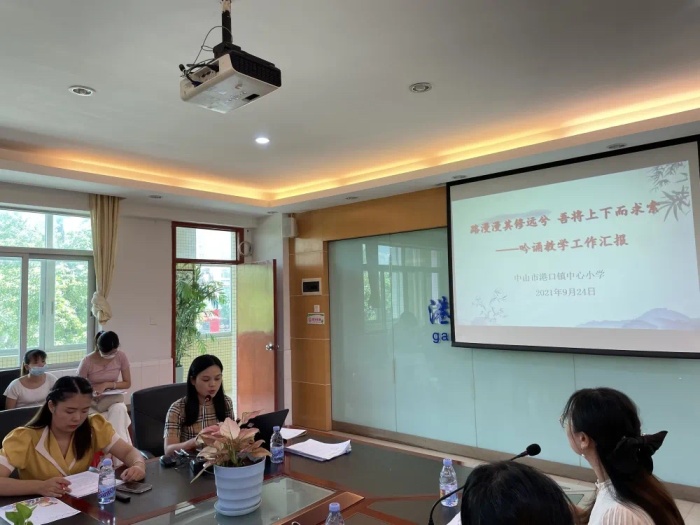 活動(dòng)第二個(gè)議程由課題組成員楊秋云老師圍繞著中心小學(xué)是怎樣將吟誦融入現(xiàn)在的語(yǔ)文教學(xué)中做分享講話。楊老師通過(guò)圖片、活動(dòng)和視頻等方式呈現(xiàn)出吟誦活動(dòng)在中心小學(xué)的蓬勃發(fā)展勢(shì)頭。